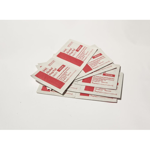 Individual packets containing a gauze sponge saturated with isopropyl alcohol. Perfect for sanitizing skin before injections or procedures.
