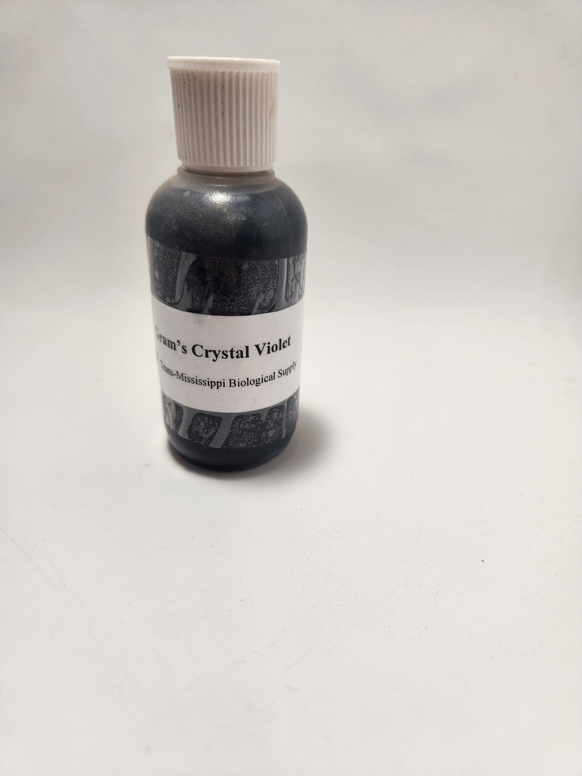 A stain used in the Gram staining procedure for bacteria. Essential for microbiology labs.
