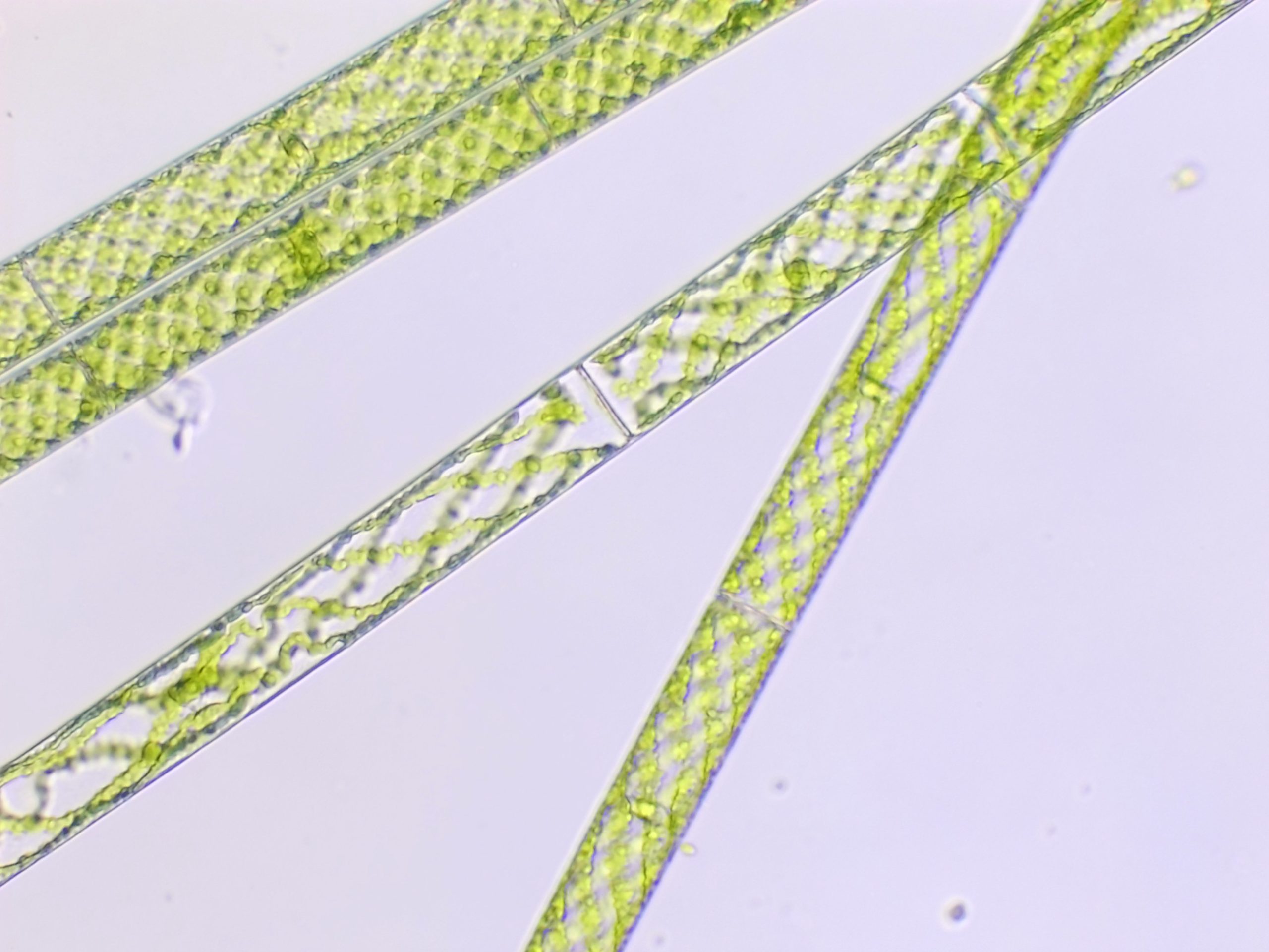 A common filamentous green alga with spiral-shaped chloroplasts.